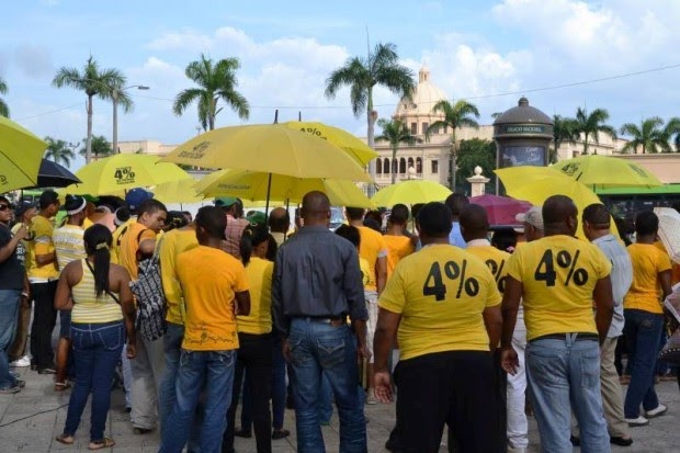 En la manifestación, realizada en la “Plaza del 4”, la Coalición dijo que con esta actividad pública vuelven a salir las sombrillas amarillas que simbolizan la lucha de la ciudadanía en todo el país “por una inversión en educación que se corresponda con los mandatos de la Constitución, la ley general de educación y la estrategia nacional de desarrollo”.